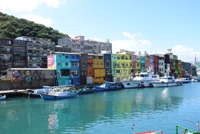 前往基隆嶼觀光船的碧砂漁港公車站牌須走到基金公路,途中可順遊阿根納造船廠遺構及彩色屋