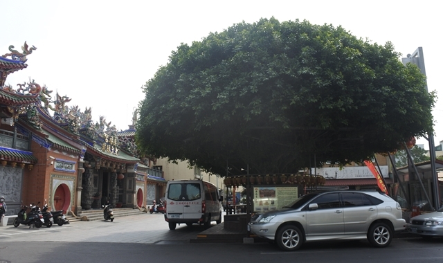 ▲廣福宮前的廟埕,一株碩大的大榕樹