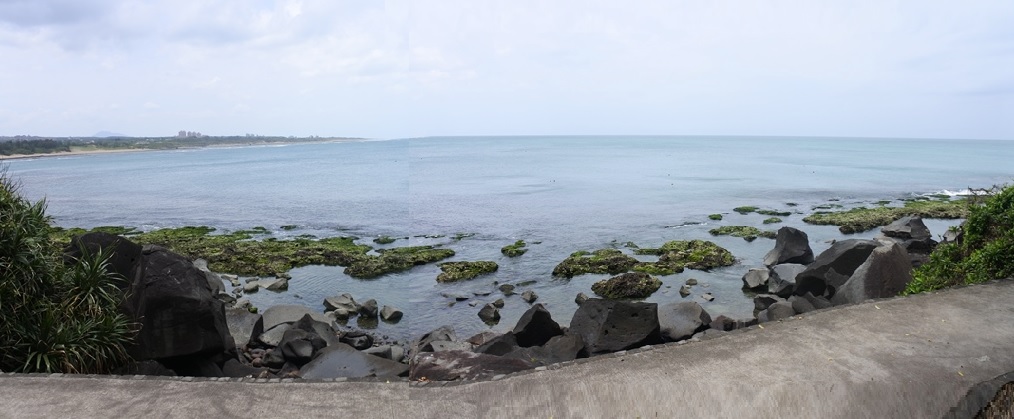 依照問路獲得的指點,雖輕易地走到淡金公路,但在路口選擇或左或右轉,以抵達較近的公車站牌上,判斷錯誤,應該在淡金公路往左,可以就近到”鄉野俱樂部”的公車站牌,我卻往右行,一直走到較遠的”新庄子”,結果自水口民主公王宮到”新庄子”,足足走了2公里路,行進間及到候車站時,還錯失二班公車。不過,總結整個行程,驚艷連連,在進入麟山鼻遊憩區後,由白沙灣繞行麟山鼻岬角的景觀步道,抵達麟山鼻漁港,再經由漁港旁的風芝門自行車木棧道到三芝。